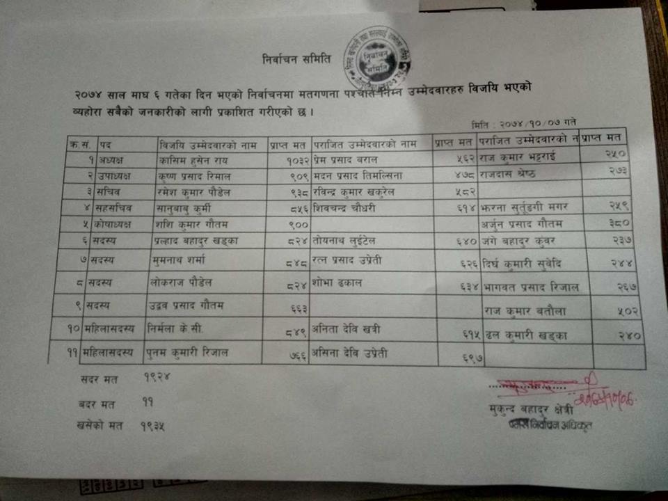हेर्नुहोस् सिमरा खानेपानीमा कसले कति मत ल्याए ।