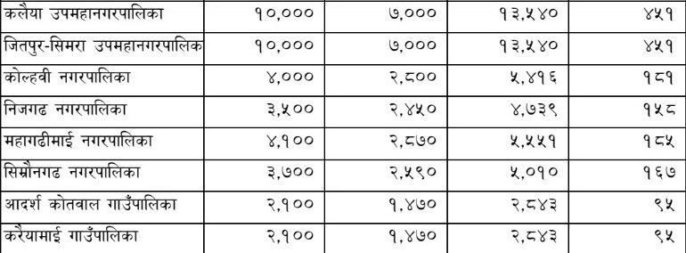 बाराको कुन स्थानीय तहमा कतिले सरकारको रोजगारी पाउछन् ? (हेर्नुुस् सूची)