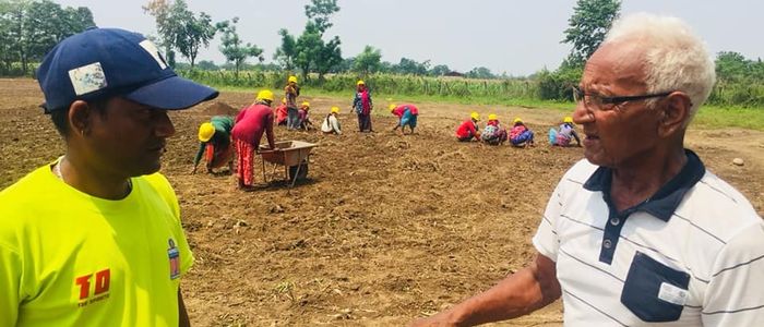 अहिले रूख काट्ने, जराफाल्ने, मैदान सम्याउने र पिचका लागि माटो प्रशोधन गर्ने काम भइरहेको छ।