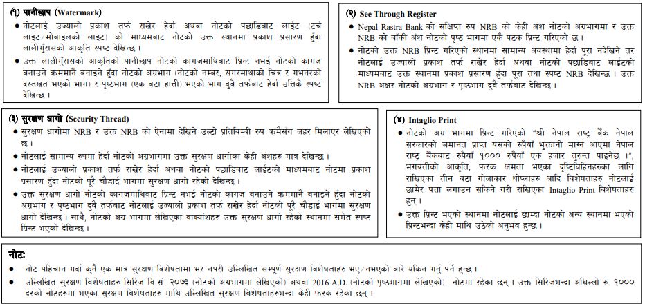 रुपैयाँ १००० दरको नोटमा रहेका सुरक्षण विशेषताहरु :