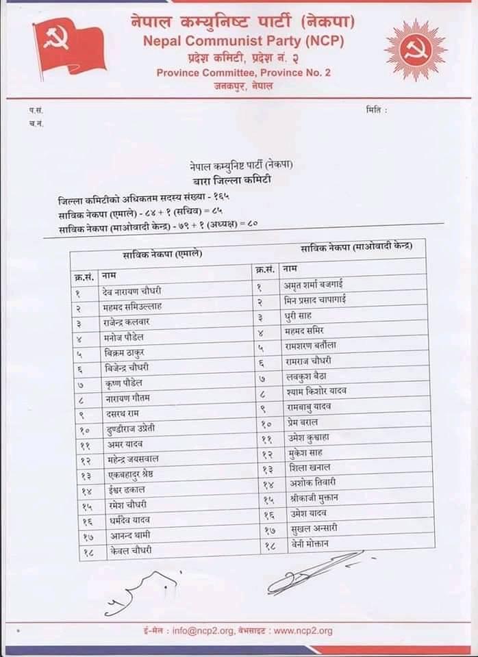 बारामा बन्यो नेकपाको जम्बो जिल्ला कमिटि, को–को बने सदस्य ? (नामावलीसहित)