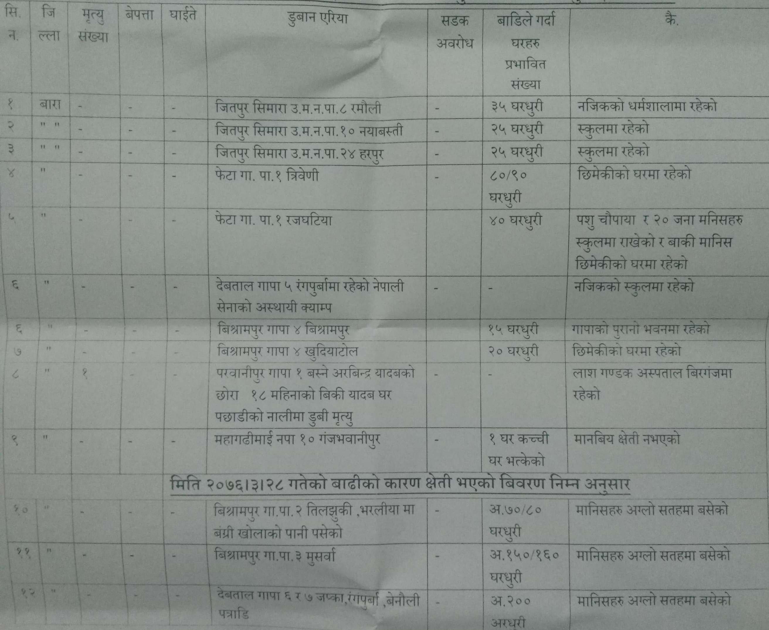 बारा अपडेट : झन्डै सात सय घरपरिवार बिस्थापित, कहा के भयो ?