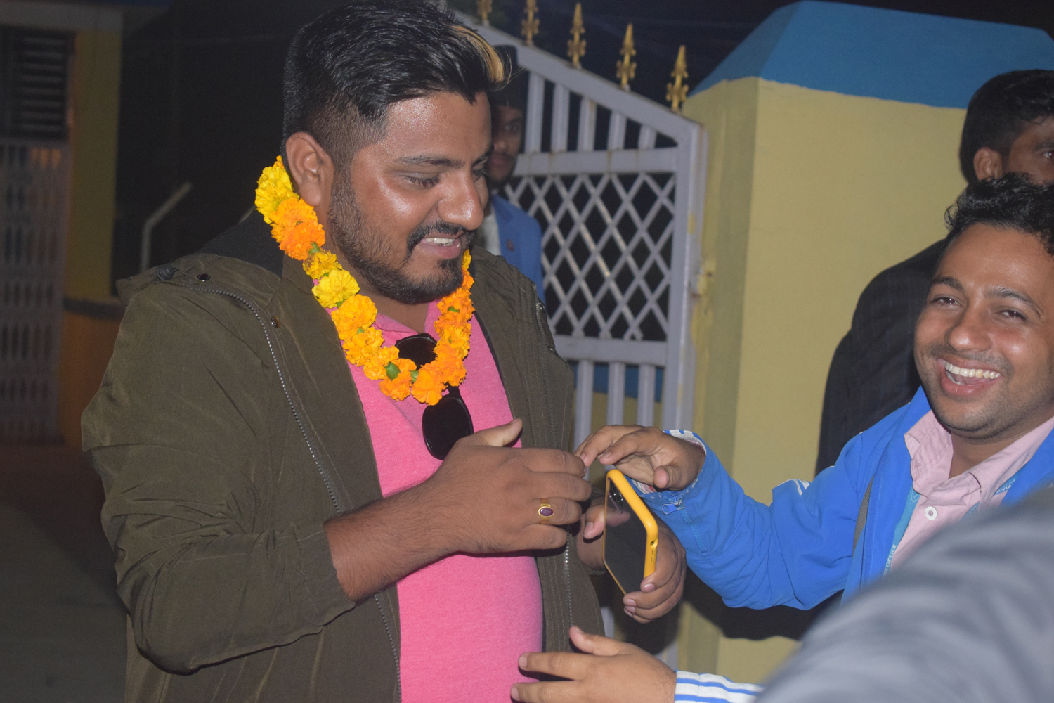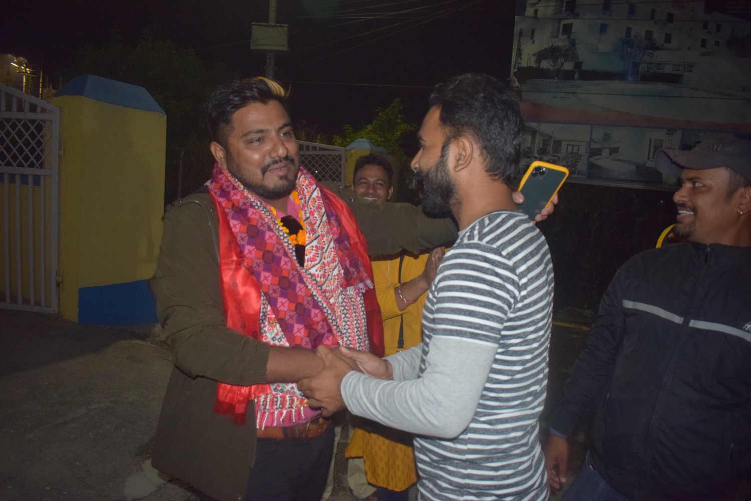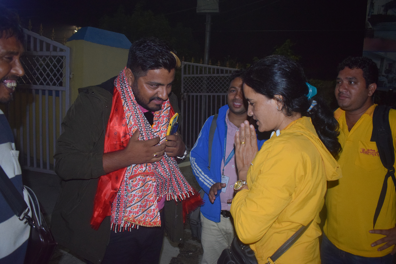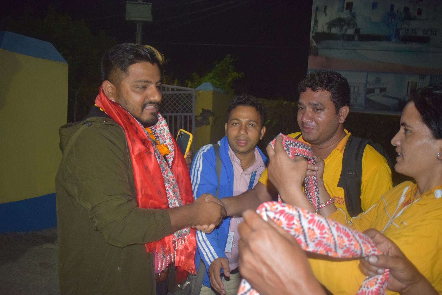 उनको स्वागतमा नेपाल पत्रकार महासंघ बाराका सहसचिव महेश्वर अधिकारीको नेतृत्वमा रहेका पत्रकार विदुर खड्का, महासंघ बाराका सदस्य प्रदिप गौतम, रञ्जन यादब, सञ्चारकर्मी वेद भट्ट, सारदा पोखरेल, विकाश पाण्डे पुगेका थिए । विमानस्थलमा राजनीतिकर्मी राजन पौडेल, प्रेम बराल, शोभा कार्की लगायत पुगेका थिए ।