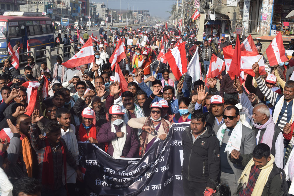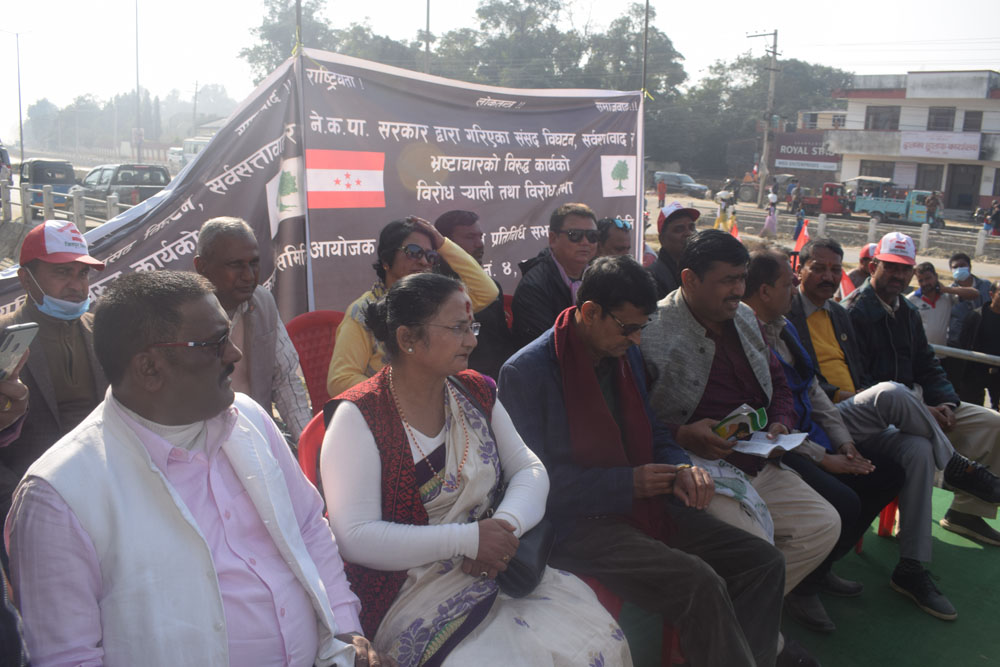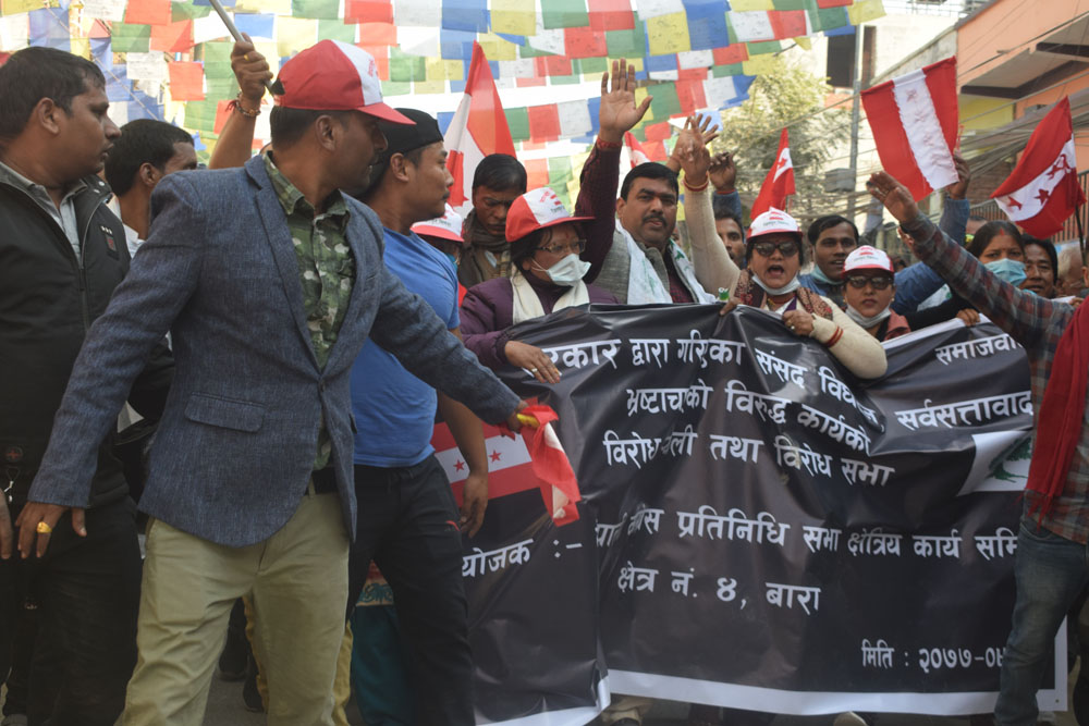सिमरा चोकमा आयोजित कोणसभामा बोल्दै नेपाली काग्रेसका नेताहरुले ओलिको अहंकारले देश धरापमा परेको बताउनुभयो । राष्ट्र र राष्ट्रियताको बिपक्षमा ओलि उभिएको भन्दै नेताहरुले यथाशिघ्र निर्णय फिर्ता लिन आग्रह गरे । उनीहरुले असंवैधानीक कदरको बिरोध गर्दै भ्रष्ट सरकार अब आफै पतन भएर जाने बताए ।