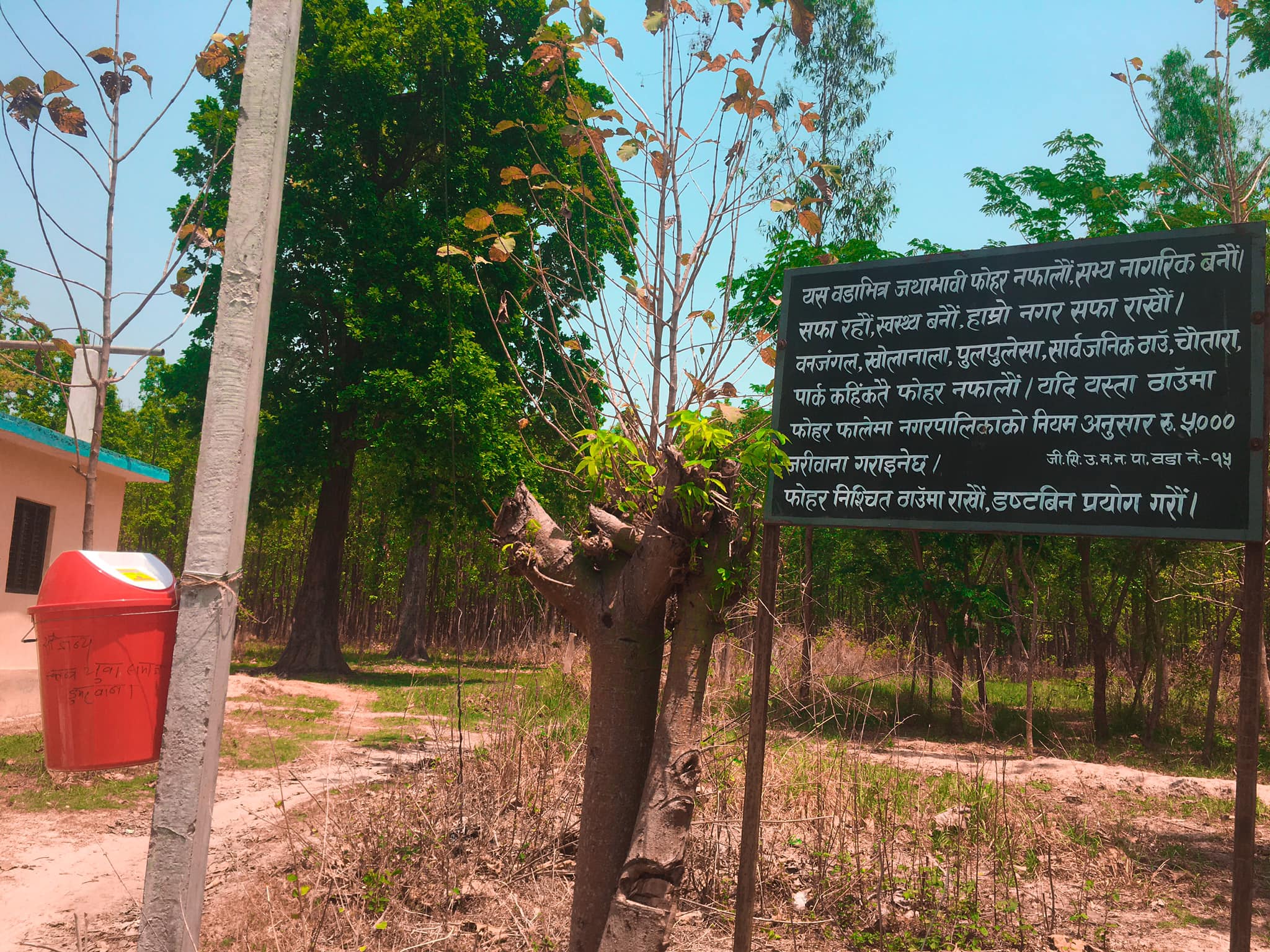 वडा कार्यालयले पटक पटक जंगलभित्र जथाभावि रुपमा सिसाका बोतलका साथै फोहोर नफाल्न आग्रह गरेपनि शर्वसाधारणले अटेरी गर्दै आईरहेका छन् । नियम अनुसार जथाभावि फोहोर फाले ५ हजार रुपैया जरिवाना तिराउने प्रावधान छ । तर त्यो नियम भने प्रभावकारी रुपमा कार्यान्वयन हुन सकेको छैन् ।