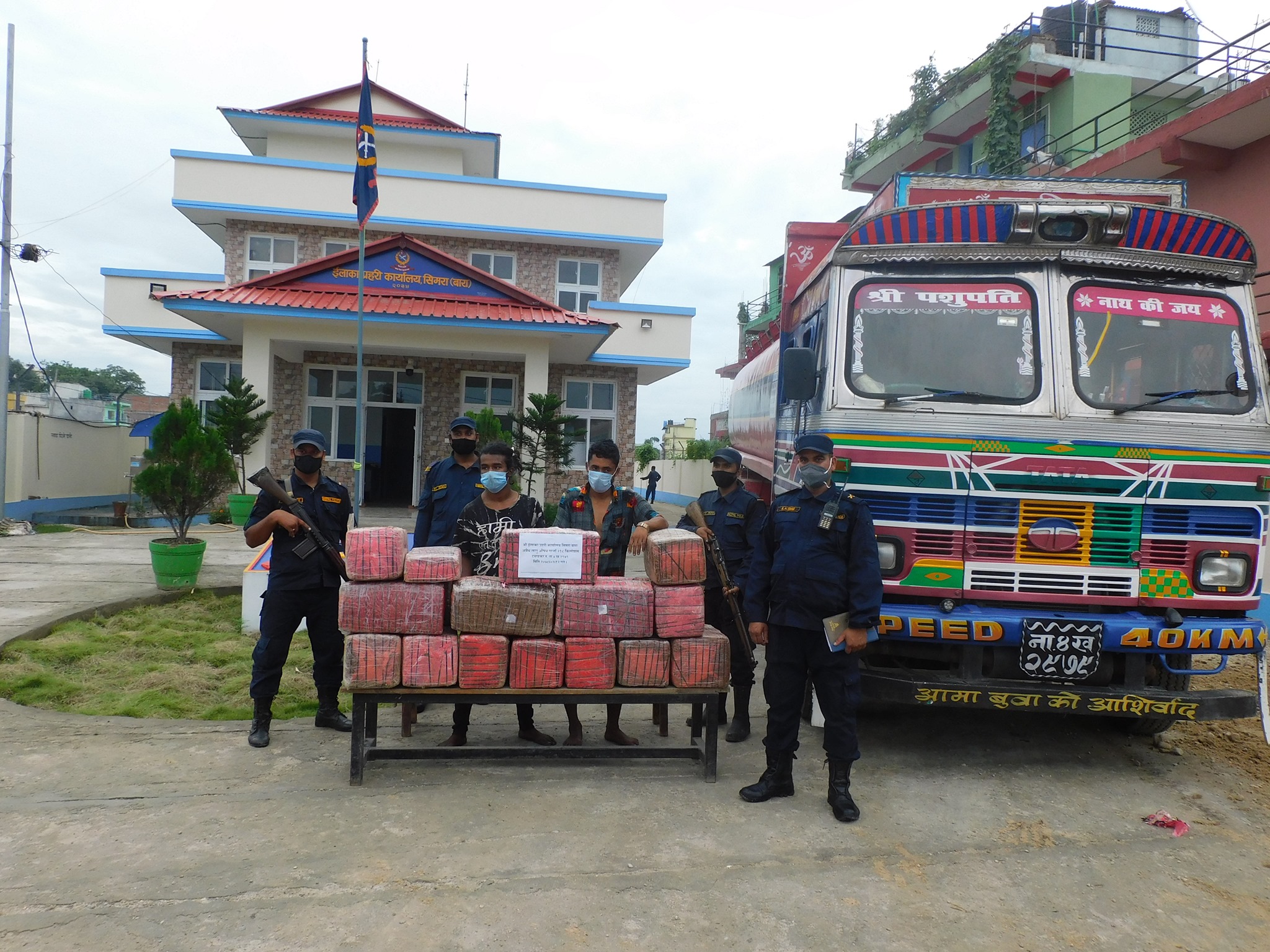 बिशेष सुचनाको आधारमा ना४ख २९७९ नम्बरको ट्यांङकरबाट अबैद्य लागु औषध गाजासहित दुई जनालाई पक्राउ गरिएको प्रहरीले जनाएको छ । पक्राउ परेका मध्य गिरि सोही ट्यांकरका चालक हुन् भने दवाडी सह चालक हुन् ।