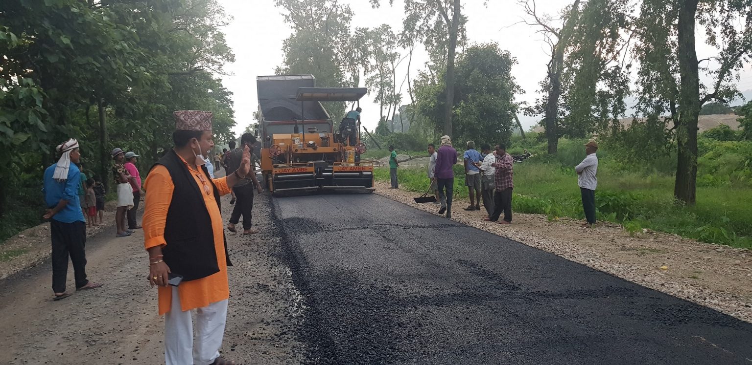 निजगढ नगरपालिका : वाह ! मेयर आफै कालोपत्रे अनुगमनमा