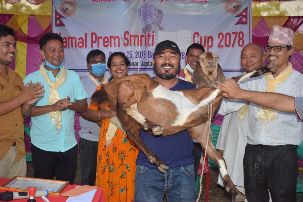 सृजना टोलको खेल मैदानमा आज भएको फाईनल खेलमा आयोजक नव जन प्रगति युवा क्लबलाई पराजित गर्दै सिमरा युनाईटेडले उपाधी उचालेको हो । बिजेता सिमरा युनाईटेडले खसी प्राप्त गरेको छ ।