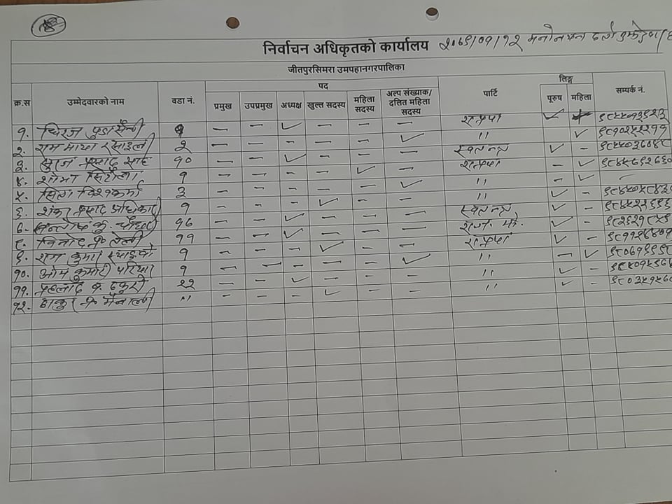 जीतपुरसिमरा : दोस्रो दिन अहिलेसम्म १२ जनाले गरे उम्मेद्धवारी दर्ता