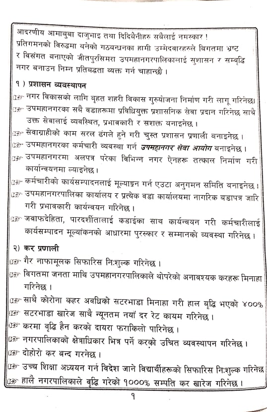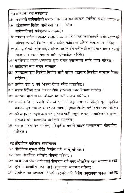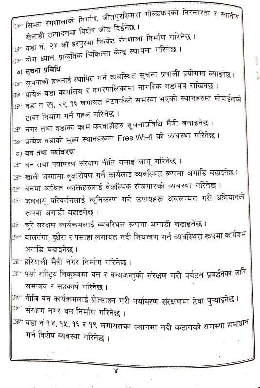 यस्तो छ जीतपुरसिमरा उपमहानगरपालिकाको लागी साझा गठबन्धनले सार्वजनिक गरेको प्रतिवद्धता पत्र ।