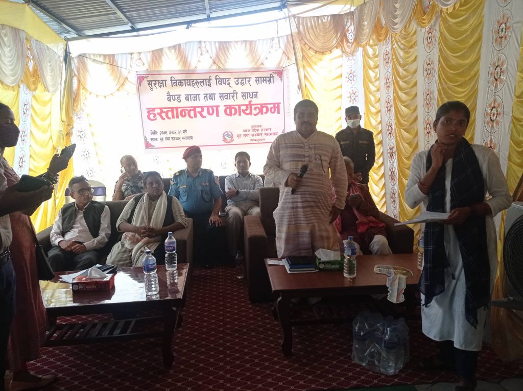 सुरक्षा निकायहरुलाई विपद् उद्धार सामग्री बैण्ड बाजा तथा सवारी साधन हस्तान्तरण कार्यक्रममा गृह तथा सञ्चार मन्त्री भरत साहले आज जीतपुरसिमरा उपमहानगरपालिकाका नगर प्रमुख राजन पौडेललाई सवारी साधन हस्तान्तरण गर्नुभएको थियो । जीतपुरसिमरा उपमहानगरपालिकाको पहलमा मन्त्रालयले सिमरा प्रहरीलाई सवारी साधन प्रदान गरेको हो ।