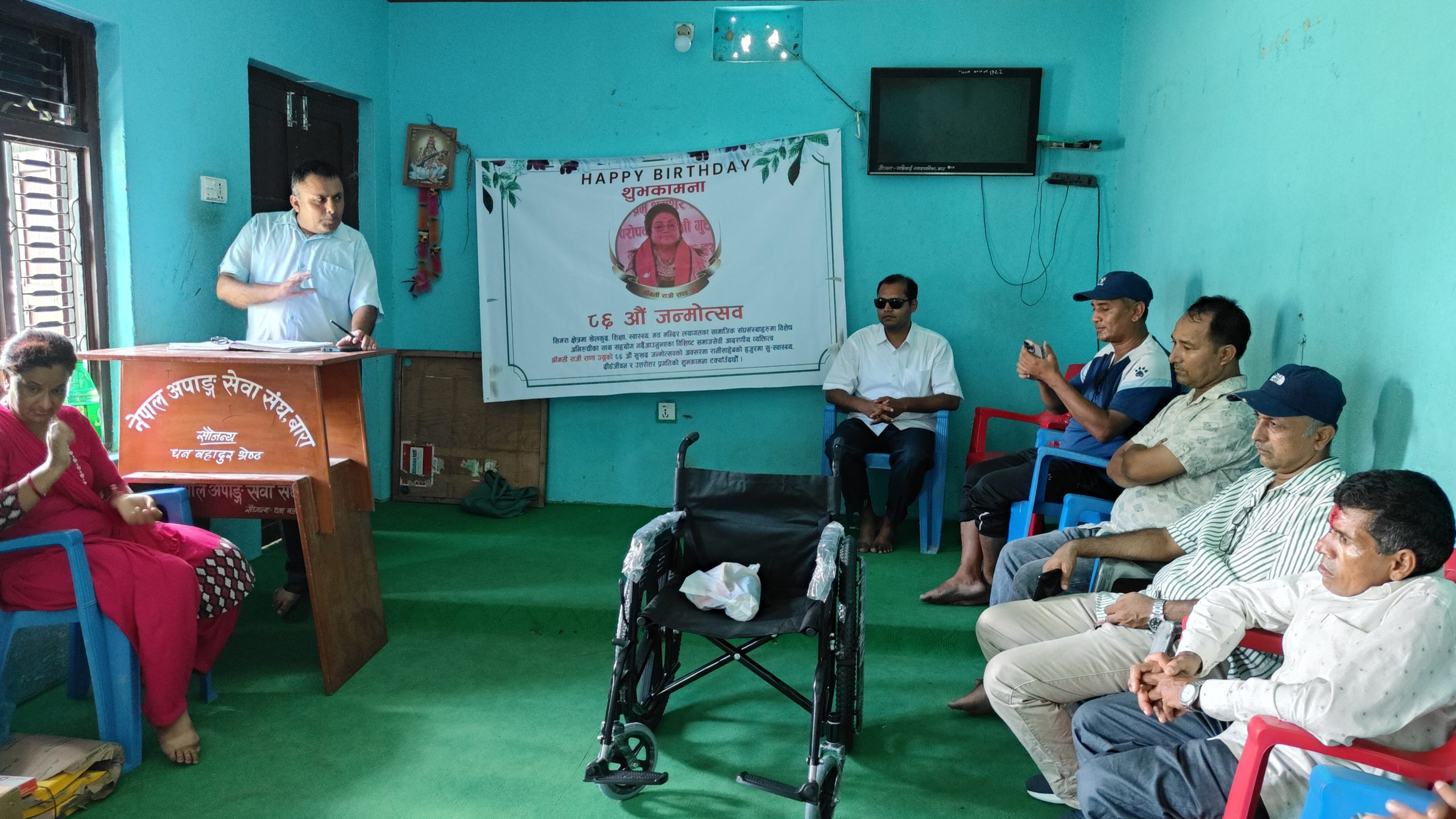 समाजसेवी राजी राणाको ८६ औं जन्मोत्सवमा अपाङ्गता भएका व्यक्तिहरूलाई सामग्री वितरण