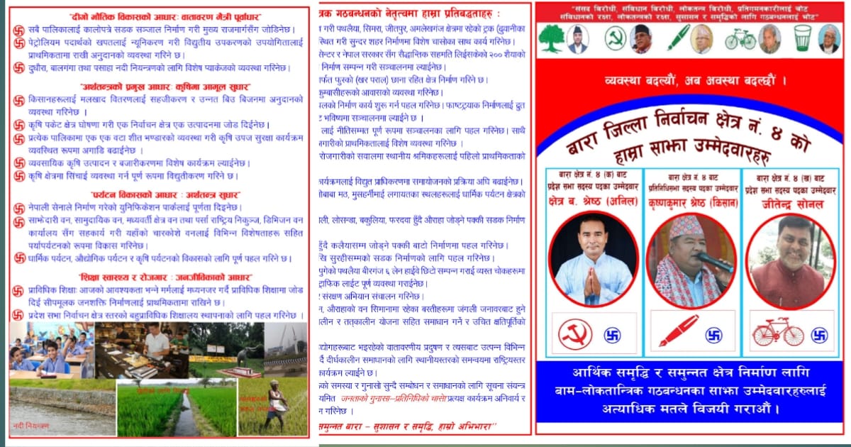 बारा क्षेत्र नं. ४ : यस्तो छ सत्ता गठबन्धनको घोषणा–पत्र सार्वजनिक (पूर्णपाठ)
