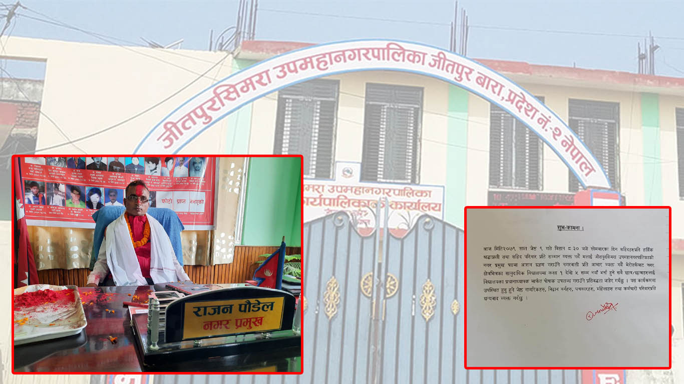 जीतपुरसिमरा : जनप्रतिनिधिको सपथ ग्रहण भोलि, नगर प्रमुख पौडेलले खुवाउने
