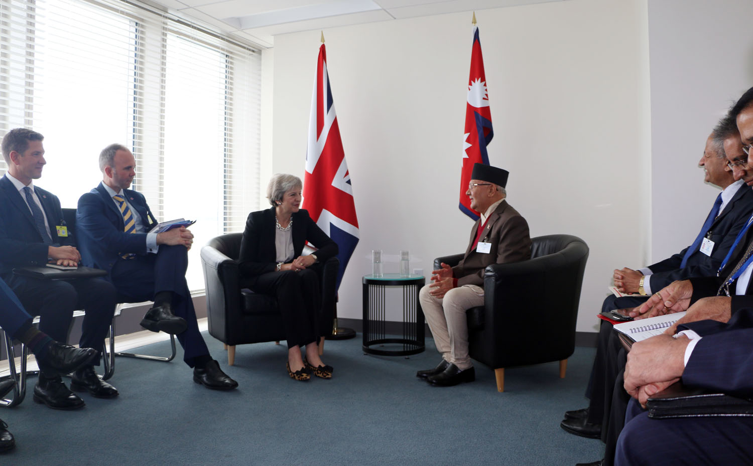 प्रधानमन्त्री ओली र बेलायती प्रधानमन्त्री मेबीच भेटवार्ता