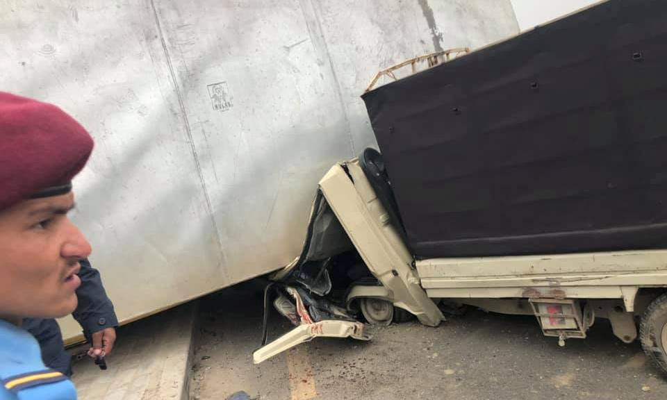 सानेपामा ट्रक्र पल्टिएर भ्यानलाई किच्दा दुईजनाको मृत्यु
