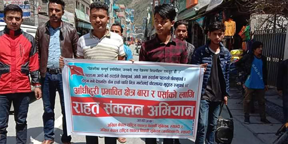 बारा-पर्साका पीडितका लागि म्याग्दीका विद्यार्थीले राहत संकलन गरे