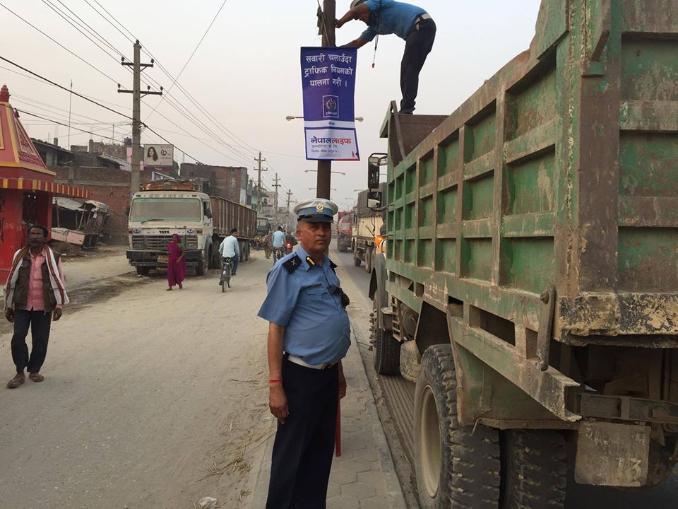 बारामा ट्रिपर र ट्याम्पु चढेर ‘ट्राफिक नियमको पालना गरौ’