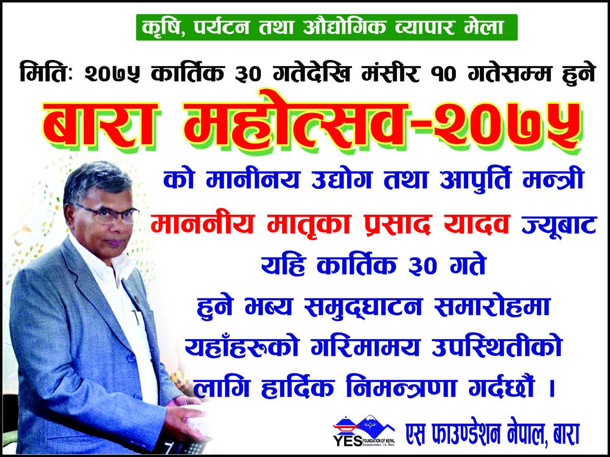 बारा महोत्सव २०७५ आजदेखि शुरु हुदै, उद्योगमन्त्रीले उद्घाटन गर्ने
