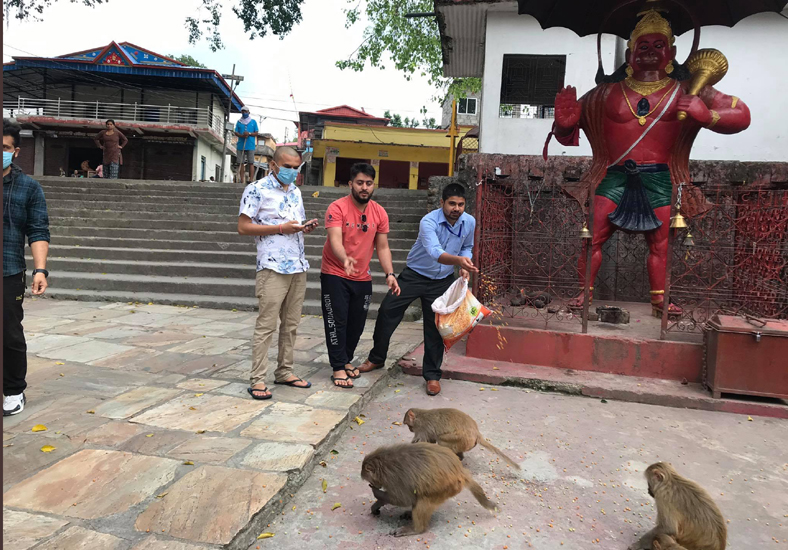 लकडाउनमा भोका बादरलाई खाने कुरा खुवाउदै रोटर्याक्ट
