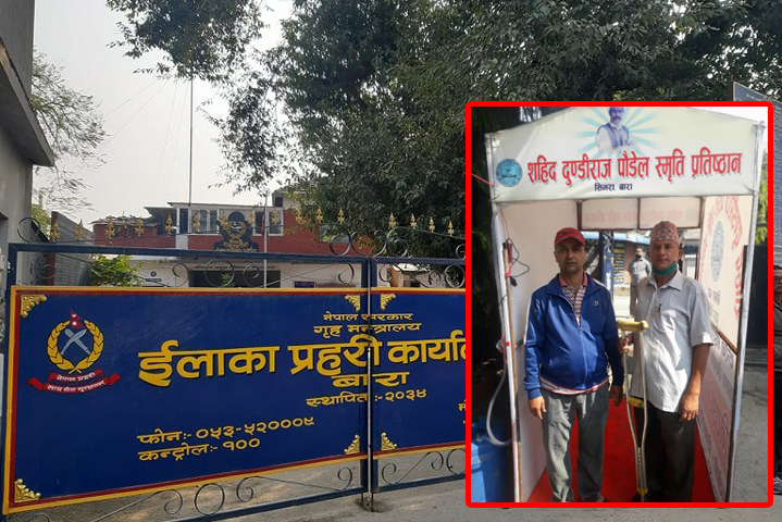 सिमरा प्रहरीलाई प्रतिष्ठानले दियो सेनेटाईजर बुथ