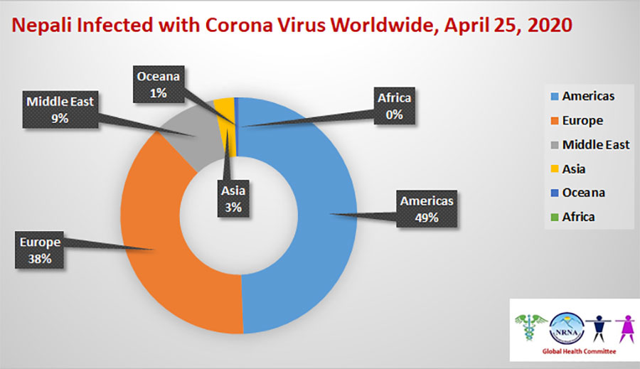 कोरोनाबाट विश्वभरका ४९ नेपालीको मृत्यु, १९८३ संक्रमित