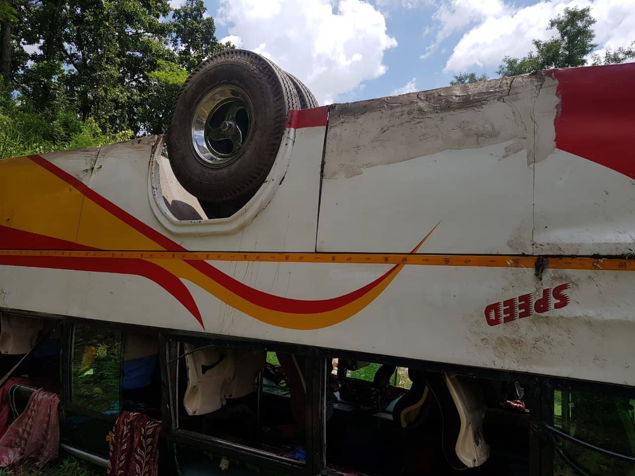 चुरियामाईमा बस पल्टिदा २९ जना घाईते