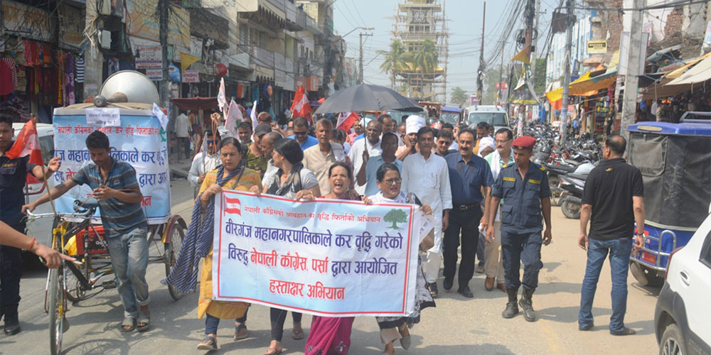 विरगन्जमा कर नबढाउन कांग्रेसको प्रदर्शन